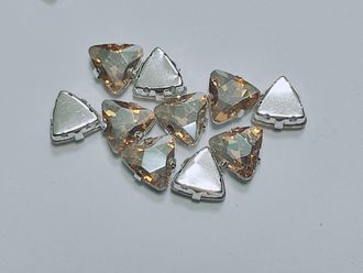 треугольные, 10 мм шампань Артикул: Шампань 30 руб. в наличии: 20 В корзину Стеклянные стразы в металлической оправе с отверстиями для пришивания. Высококачественная огранка. Треугольные, 10 мм. Цвет: шампань. Цена указана за 1 шт.